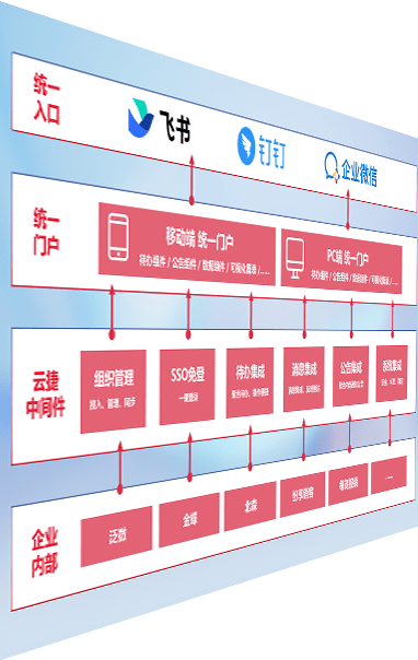 对协作平台提供支持服务,,支持企业应用与协作平台对接,,包含组织同步、、、、消息集成、、、待办集成等。。。。支持目前主流的协作平台:钉钉、、、、企微和飞书。。。